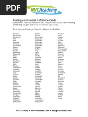 Nvc Academy Feelings And Needs Nonviolent Communication Pdf Interpersonal Relationships Intimate Relationships